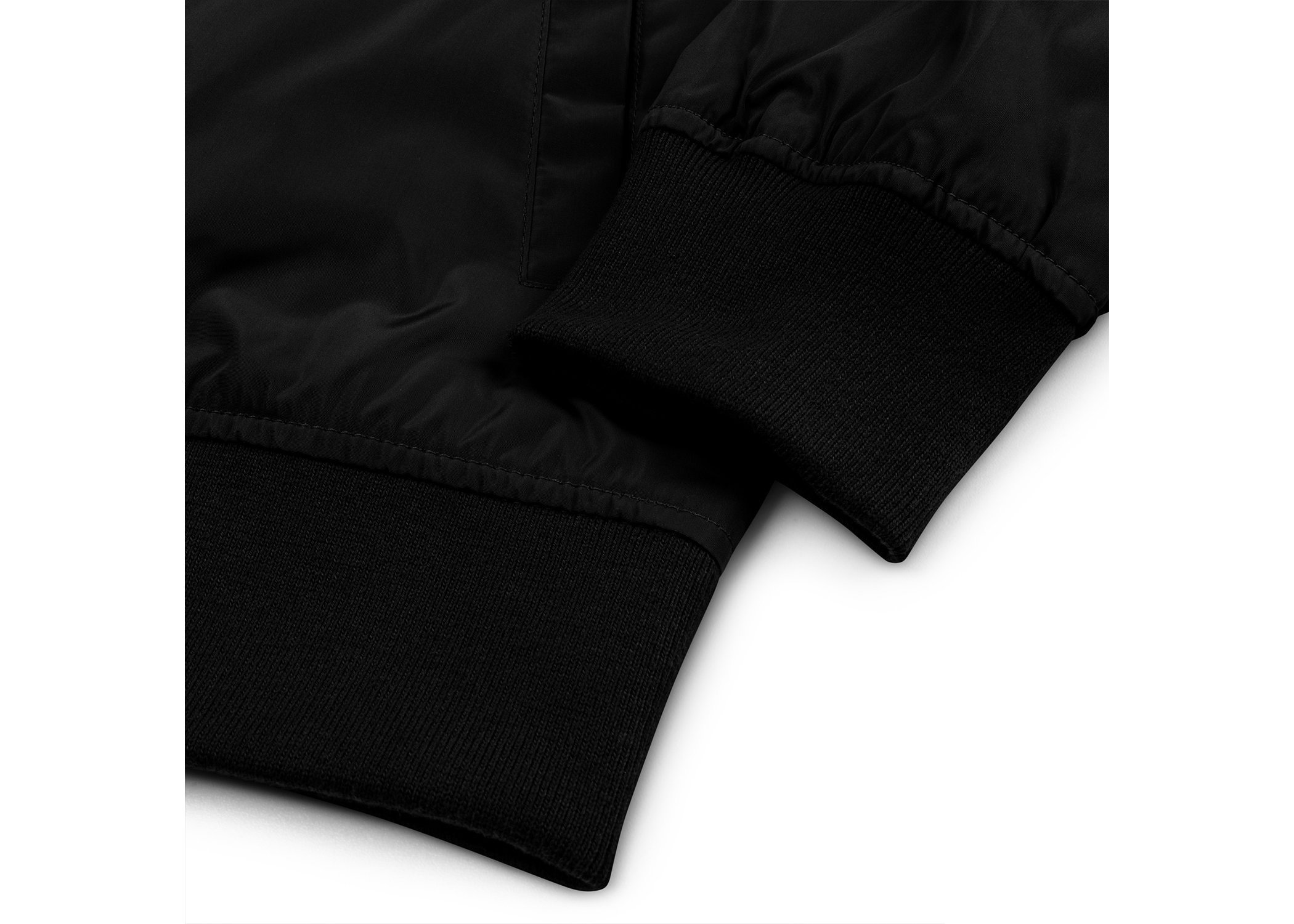 – Ribbed neck collar, sleeves and hem